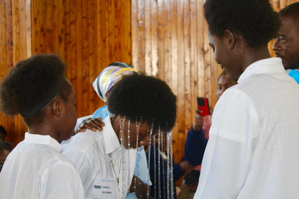 By Sr. Tryness Mulubwa, ZAS Hub Twenty-two girls from Laura Girls Secondary School in Kasama have received the sacraments of Baptism, Confirmation, and Communion during a Mass held at the Laura Centre Formation House chapel. The Mass was celebrated by Fr. Patrick Sebyera, a Missionary of Africa. During the homily, Fr. Patrick encouraged the girls to always be hospitable and loving towards one another. The girls who received the sacraments expressed their gratitude to the Salesian Sisters of Don Bosco for their accompaniment during the period of preparation. “I am happy and I feel so strong spiritually,” Justina Chilame said. Vannesa Nachiwala said that her relationship with God has moved to another level. This is the second time such an event has taken place at the school.