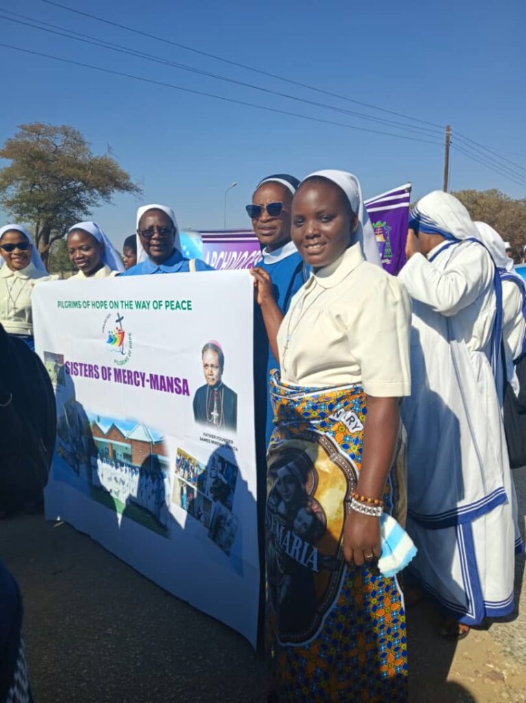 By Sr. Christabel Kazembe, (S.O.M), Lusaka CNCS Hub Hundreds of consecrated men and women from across Zambia gather for a national pilgrimage under the theme ‘’Pilgrims of Hope on the Way of Peace,’’ celebrating consecrated life with prayer, reflection and fellowship. The pilgrimage began at Chelstone Parish and concluded at the Marian Shrine in Lusaka, with participants praying, singing and reflecting together along the way. The event was led by Rt. Rev. Bishop George Lungu of Chipata Diocese, Director for Consecrated Life at the Zambia Conference of Catholic Bishops (ZCCB), who accompanied the pilgrims throughout the journey. Bishop Lungu said his presence was a sign that Zambia’s bishops remain close to consecrated men and women in their mission. During his homily at the Marian Shrine, Bishop Lungu reflected on the life of Mary as a model of faith and perseverance and reminded participants that consecrated life, like Mary, carries Christ to the world. “Pilgrimage is not only a physical journey but also a spiritual reminder that our charisms are gifts of hope for the Church, particularly in the rural and remote parts of Zambia where God’s people most need encouragement,” he said. Meanwhile, Sr. Delphine Kalisha, Superior General of the Sisters of Mercy, described the Jubilee as a moment of reflection on how consecrated people are called to give hope in a world full of suffering and uncertainty. She noted that many families struggle without food and that political challenges and difficulties within the Church often make people feel there is no light at the end of the tunnel. “This has been a very good moment of reflection at a personal level, as well as for groups or congregations. Living in harmony and happiness can inspire hope in society,’’ Sr. Delphine said. She urged young religious to remain courageous and said the Church needed their presence to inspire future generations. “Without religious life in the Church there would be a very big gap,” Sr. Delphine said. “So have courage and have faith because hope goes with faith. Things may be difficult but there is that green light.”